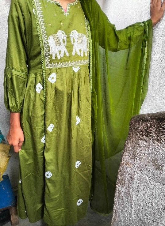 Green Kantha Patchwork Style Pure Cotton Kurta Set