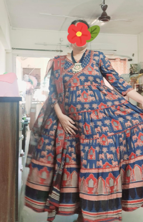 Ordered this blue anarkali and I am absolutely delighted at my purchase. The fabric is great with amazing fit and flare...thanks a lot.